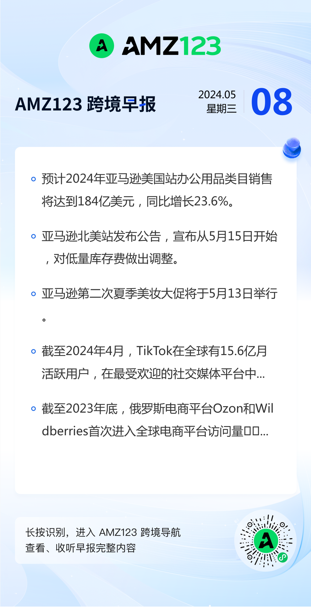 预计2024年亚马逊美国站办公用品类目销售将达到184亿美元,同比增长23.6%。