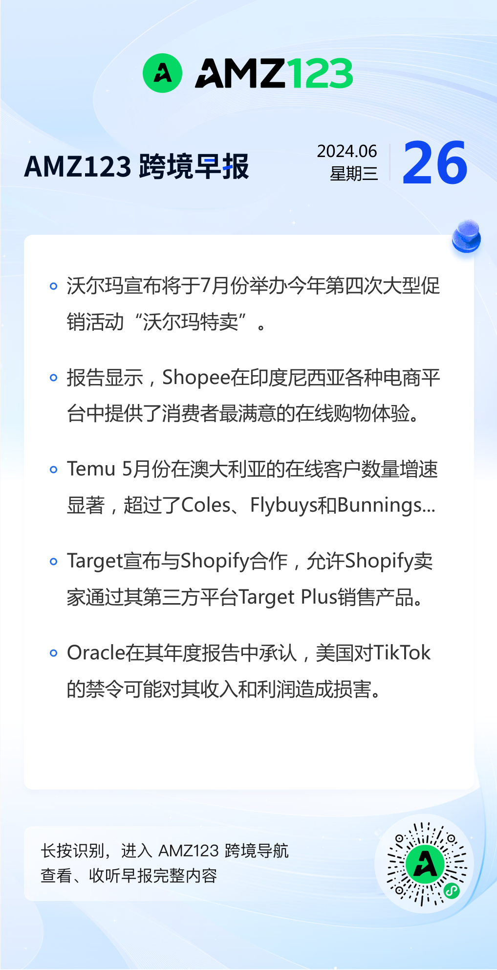查看更多 2024年6月26日跨境早报