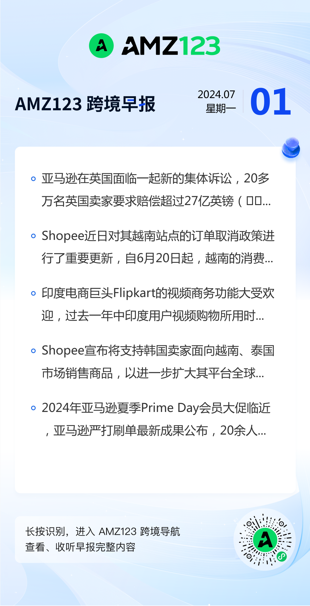 查看更多 2024年7月1日跨境早报
