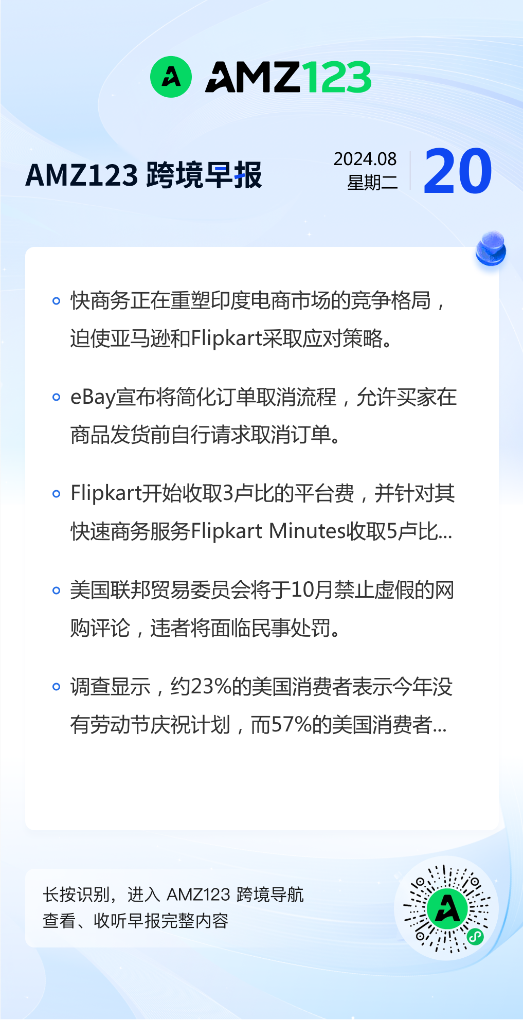 AMZ123获悉,日前,据外媒报道,印度电商平台Flipkart开始收取3卢比的平台费,并针对其快速商务服务Flipkart Minutes收取5卢比的平台费。Flipkart表示,这笔费用是为维持高效运营和改善平台用户体验而收取的象征性费用。