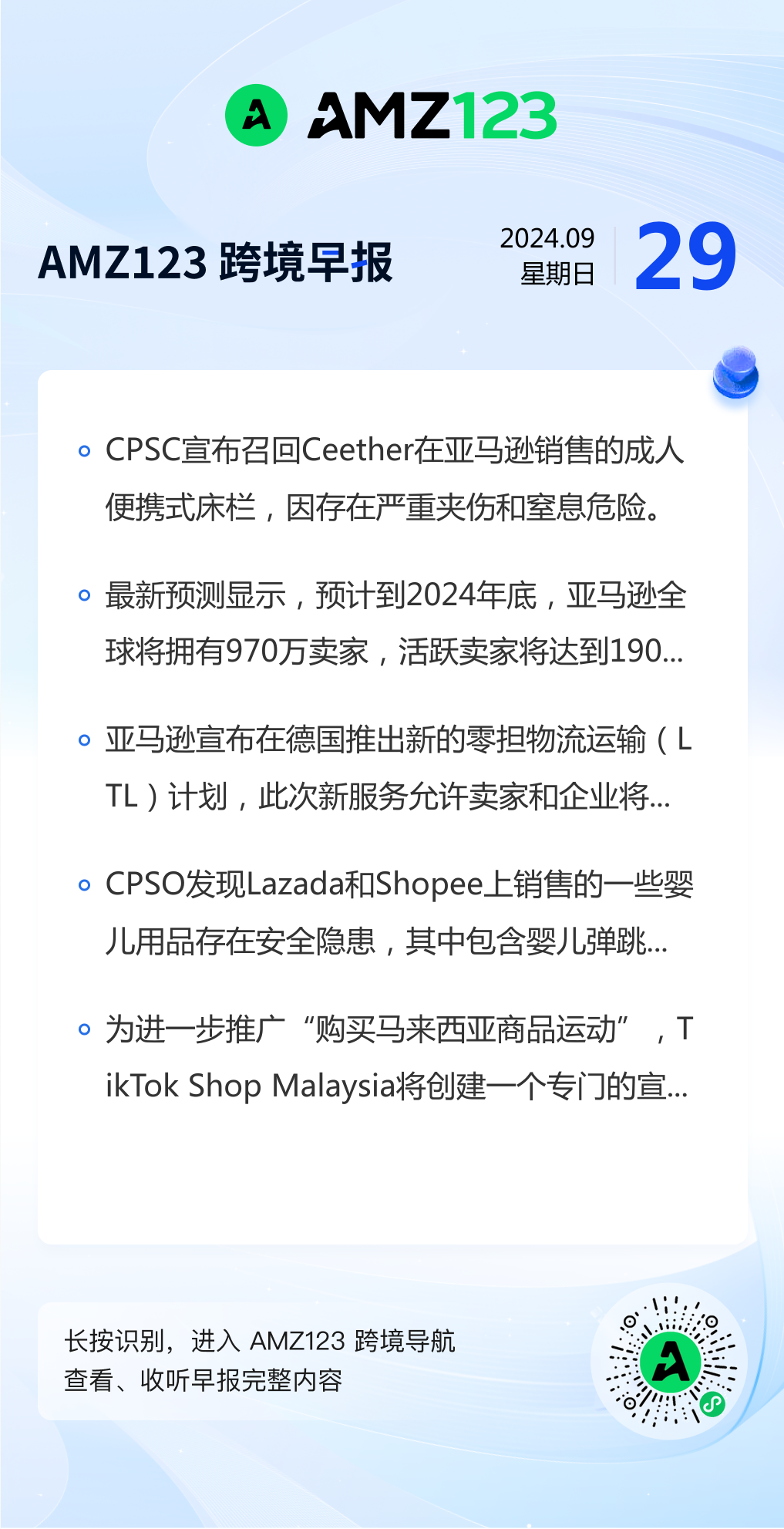查看更多 2024年9月29日跨境早报