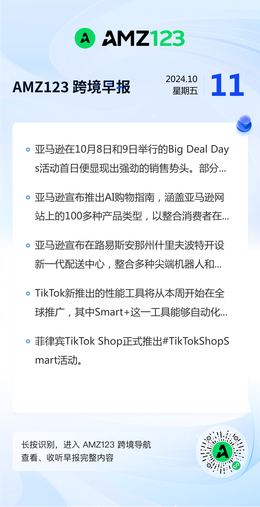 亚马逊在10月8日和9日举行的Big Deal Days活动首日便显现出强劲的销售势头。部分亚马逊卖家的收入同比激增了41%。