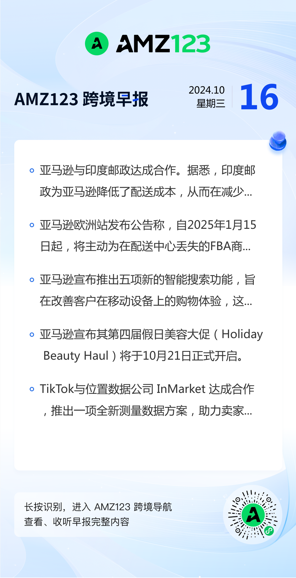 亚马逊欧洲站发布公告称,自2025年1月15日起,将主动为在配送中心丢失的FBA商品进行补偿。