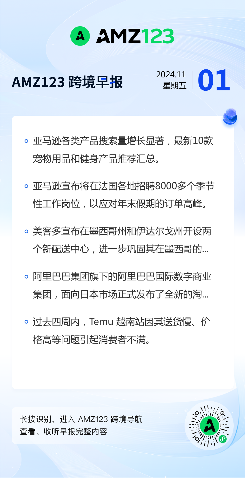 查看更多 2024年11月01日跨境早报