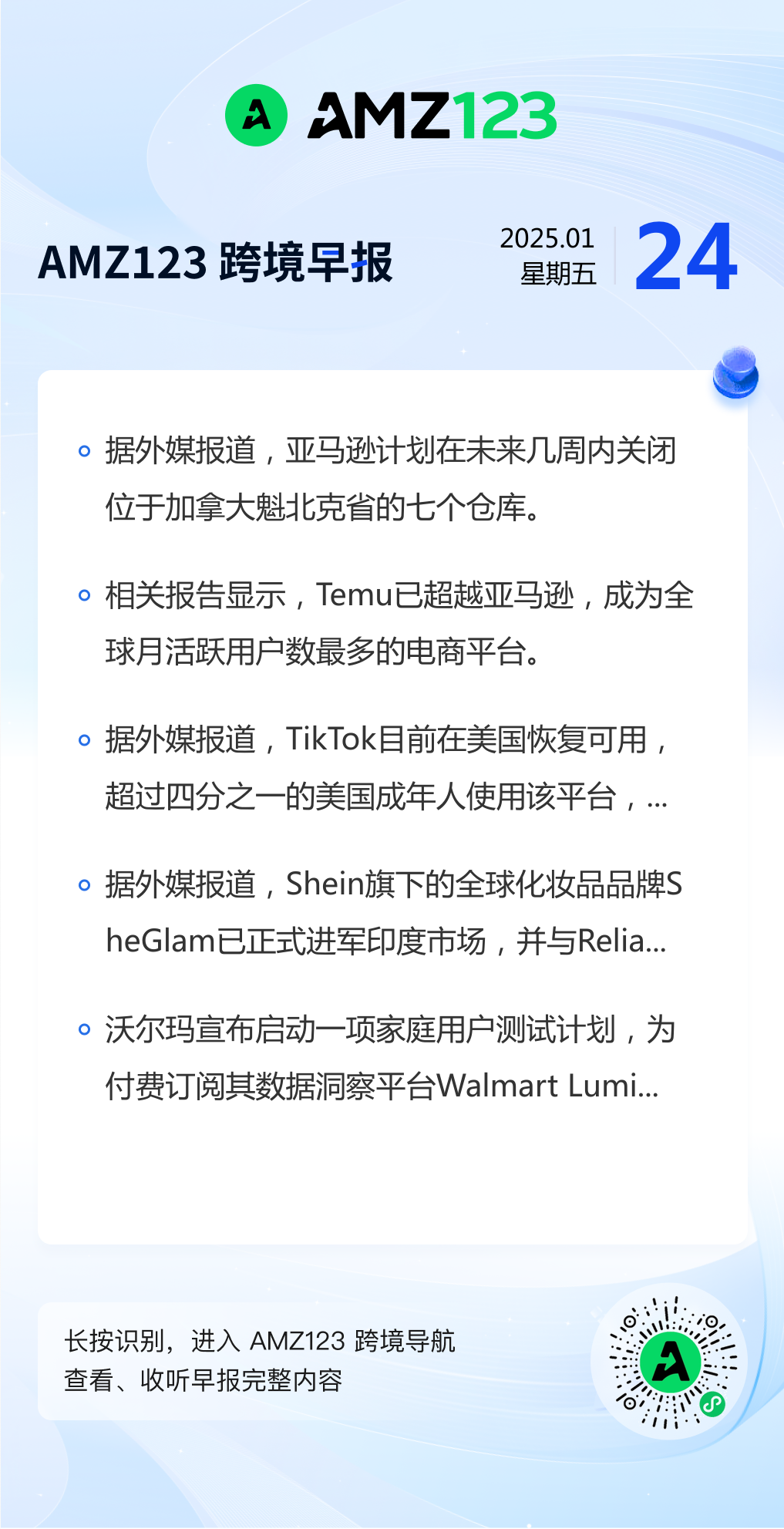 查看更多 2025年1月24日跨境早报