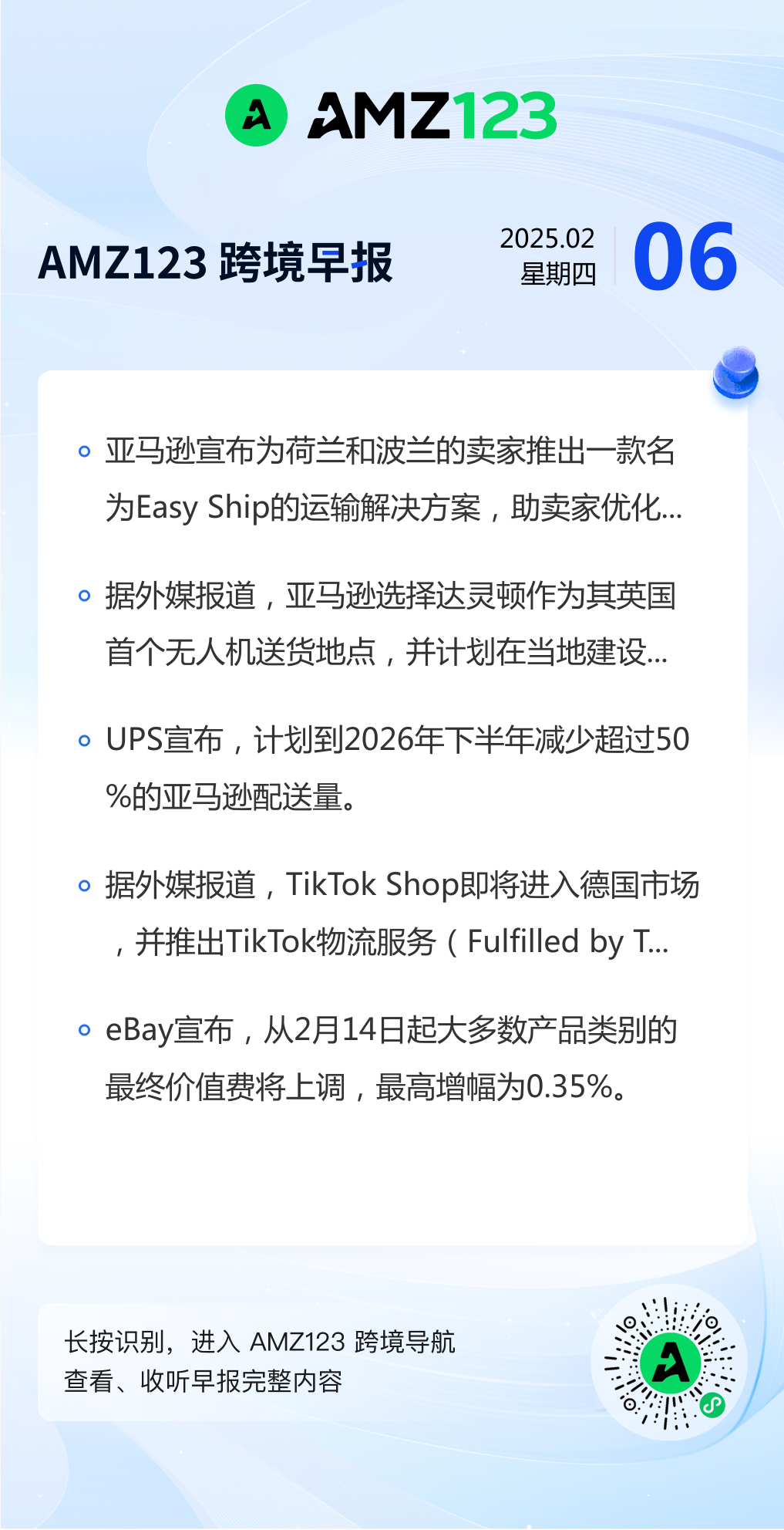 查看更多 2025年2月6日跨境早报