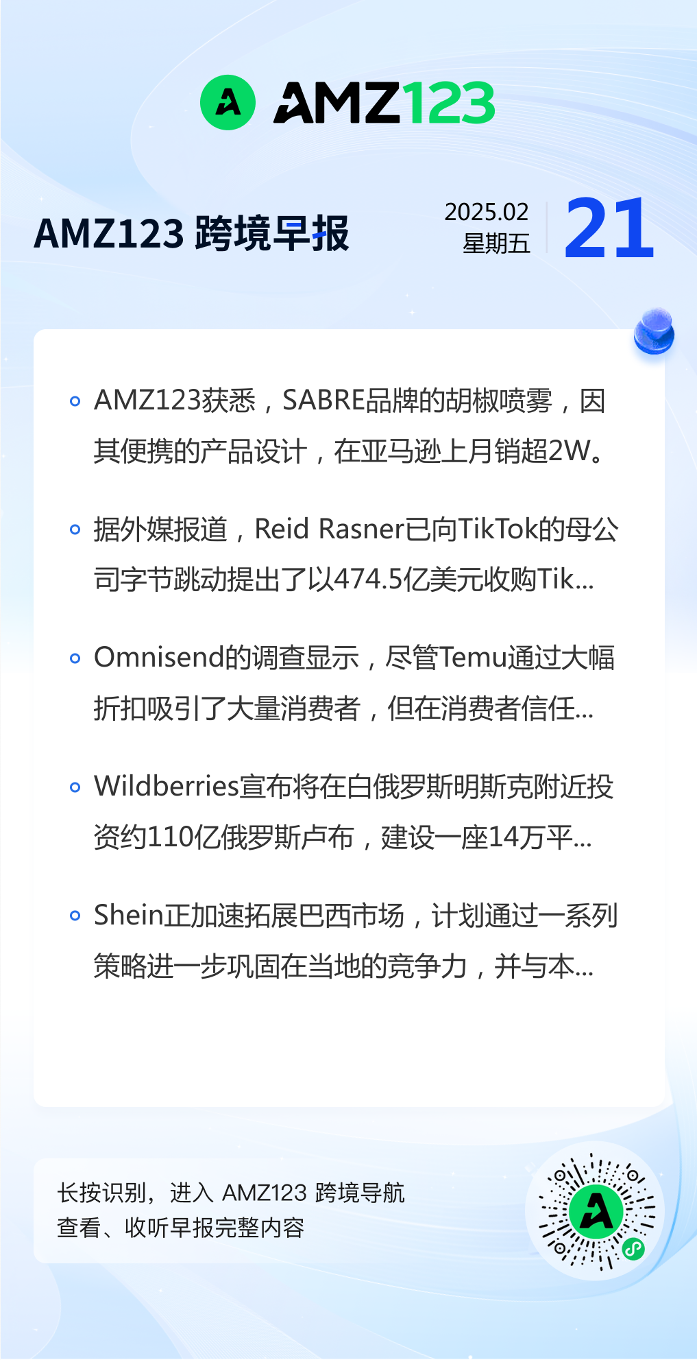 查看更多 2025年2月21日跨境早报