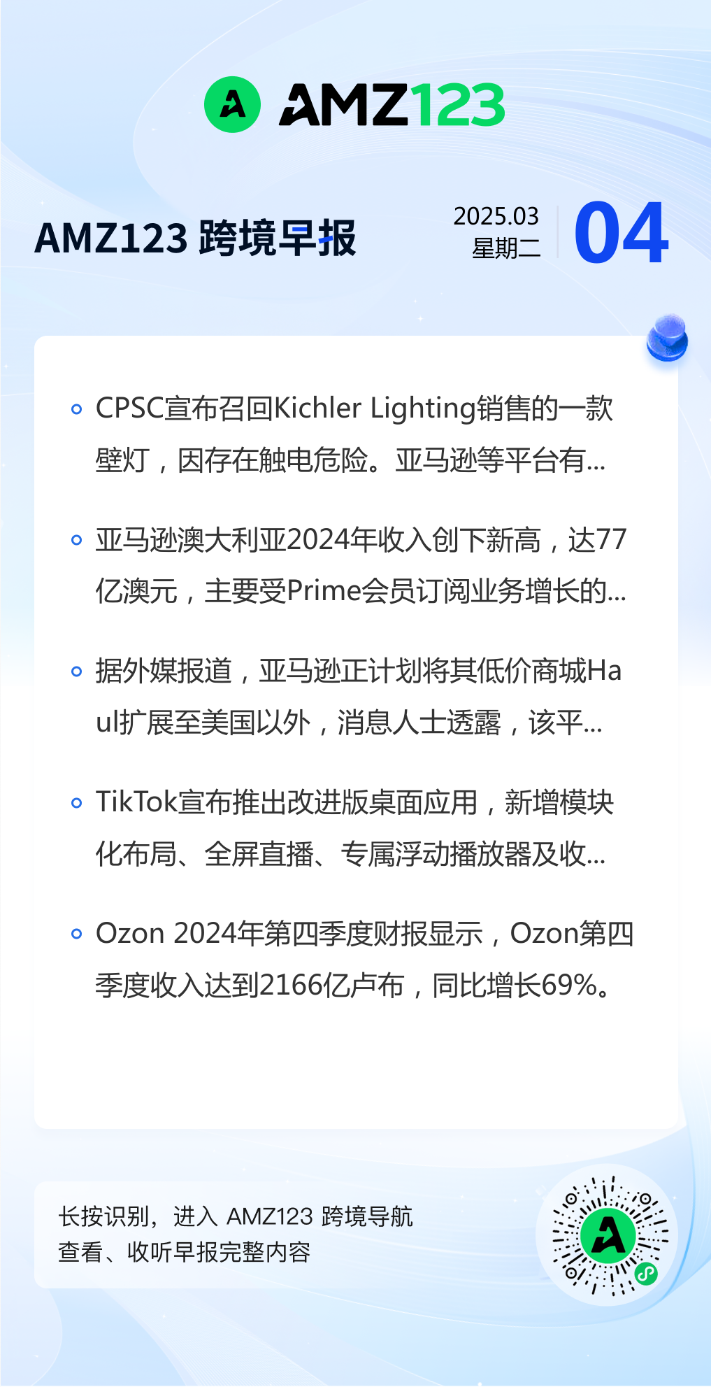 查看更多 2025年3月04日跨境早报