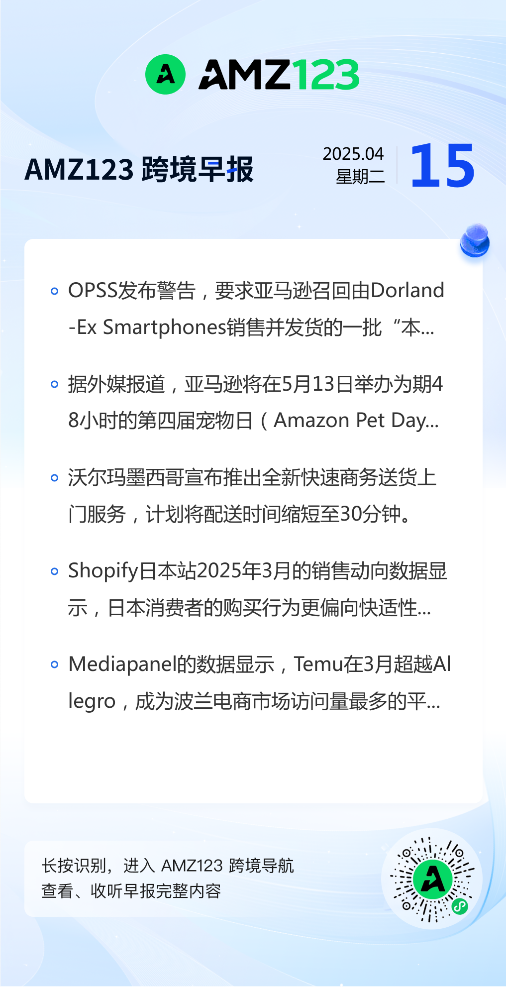 AMZ123获悉,日前,据外媒报道,沃尔玛墨西哥宣布推出全新快速商务送货上门服务,计划将配送时间缩短至30分钟。据了解,沃尔玛目前提供的“Pronto”服务支持90分钟内送货。为进一步提升效率、吸引年轻消费者,沃尔玛正通过一系列物流和技术升级,推动30分钟达的新模式。