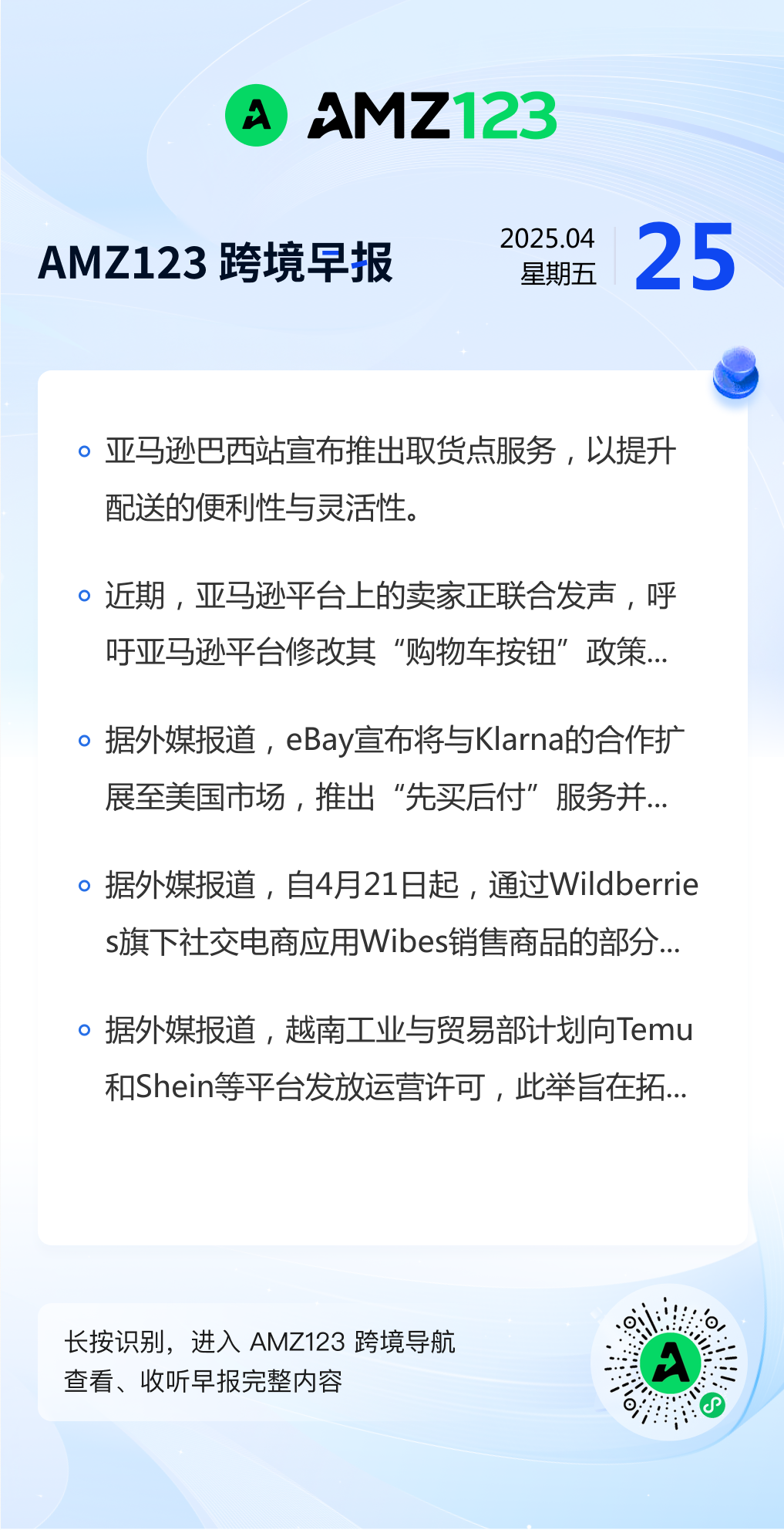 查看更多 2025年4月25日跨境早报