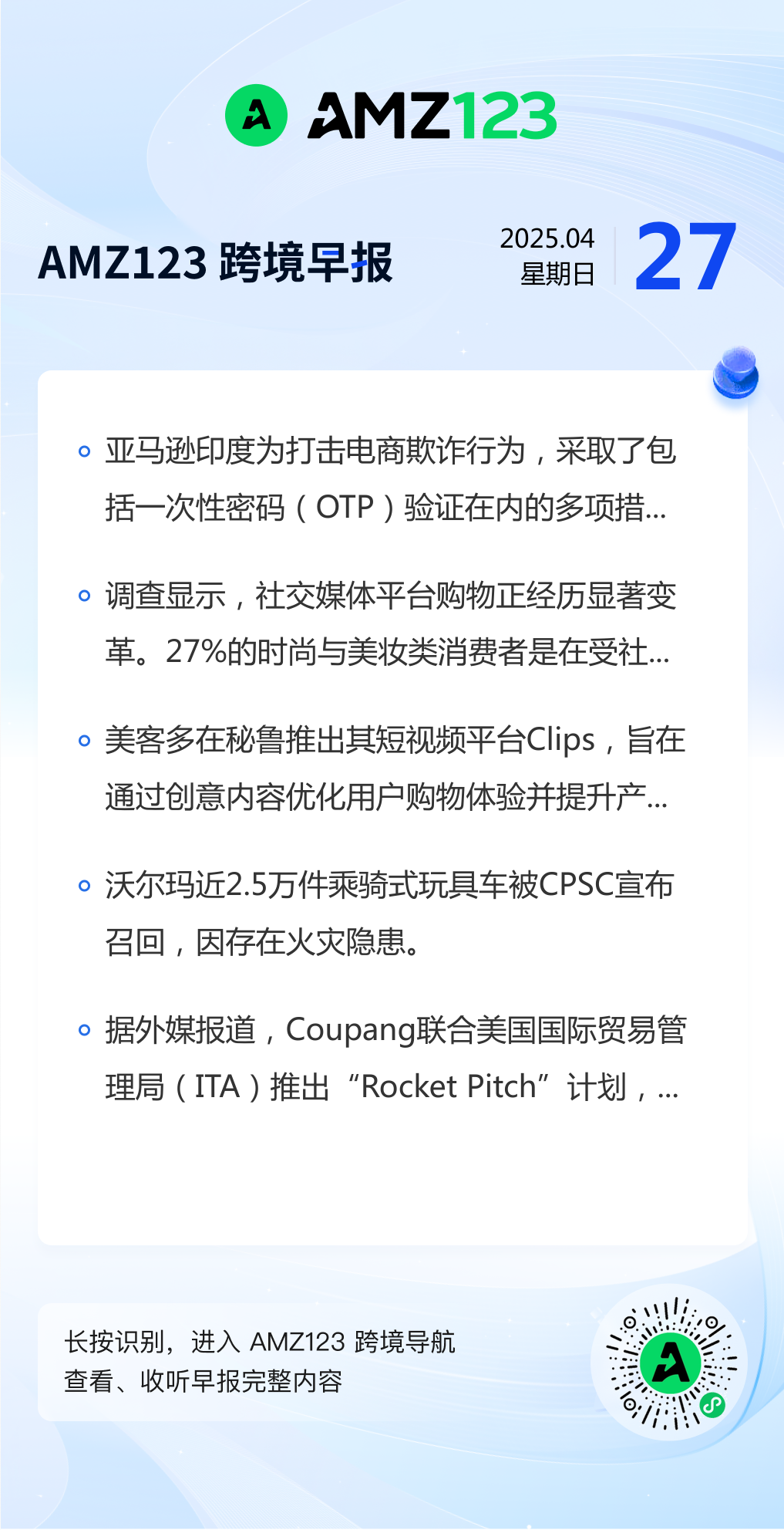 查看更多 2025年4月27日跨境早报