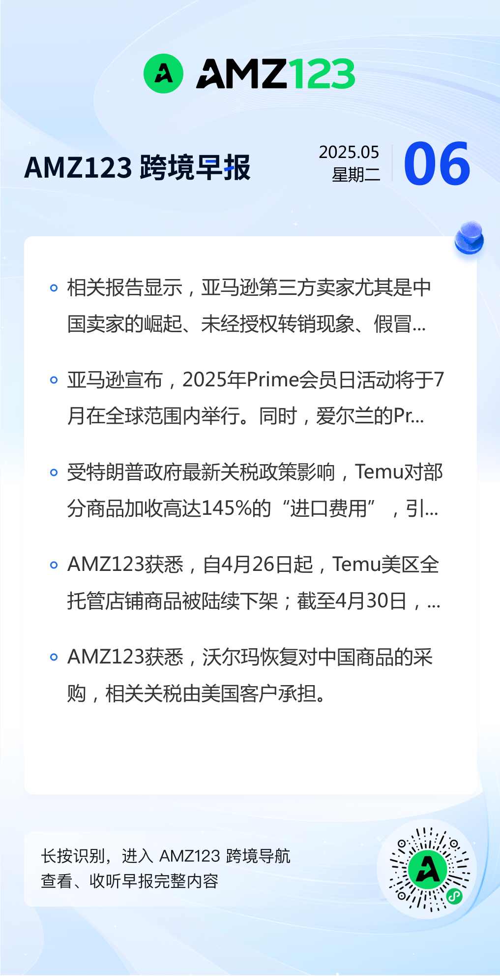 AMZ123获悉,沃尔玛恢复对中国商品的采购,相关关税由美国客户承担。