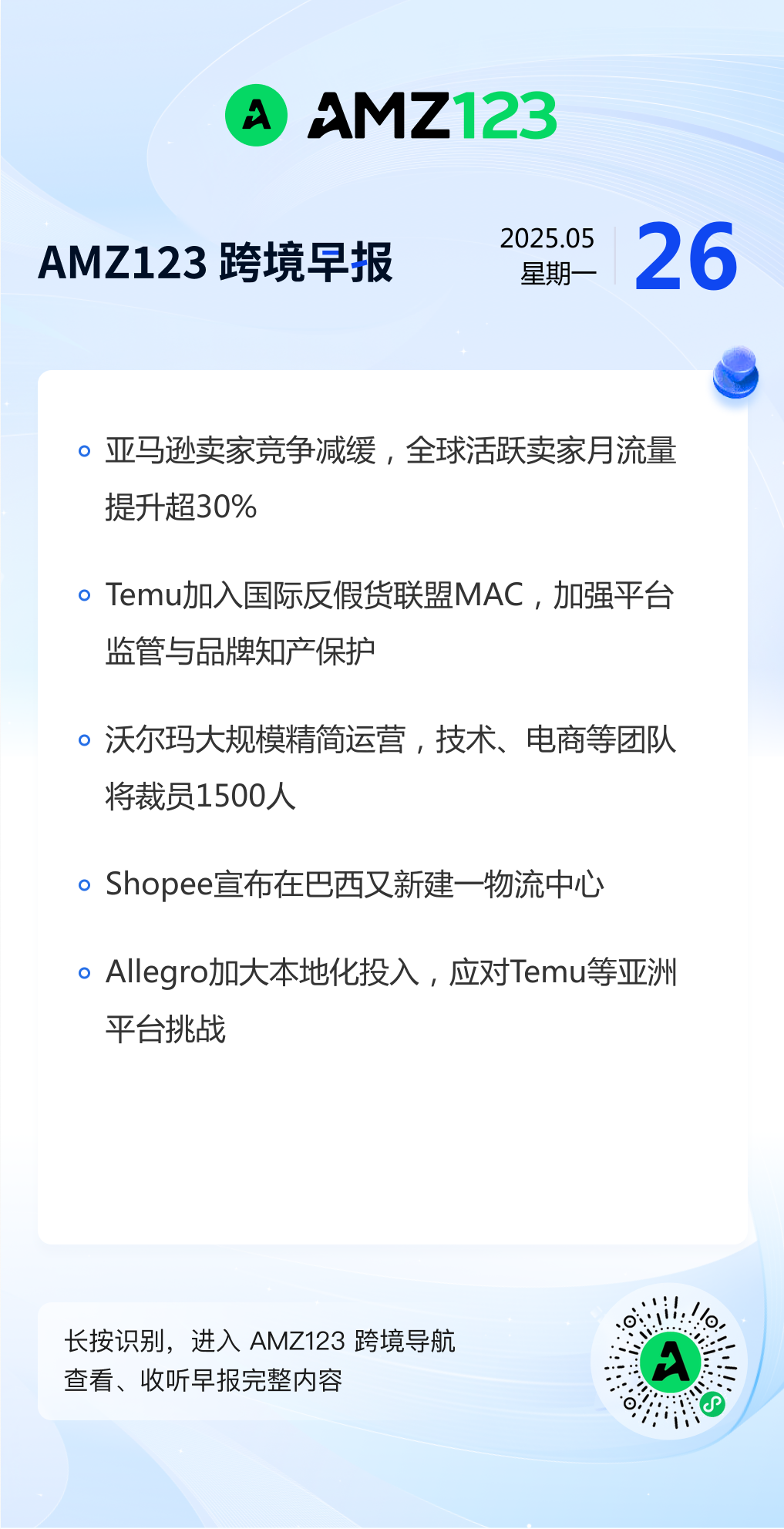 查看更多 2025年5月26日跨境早报