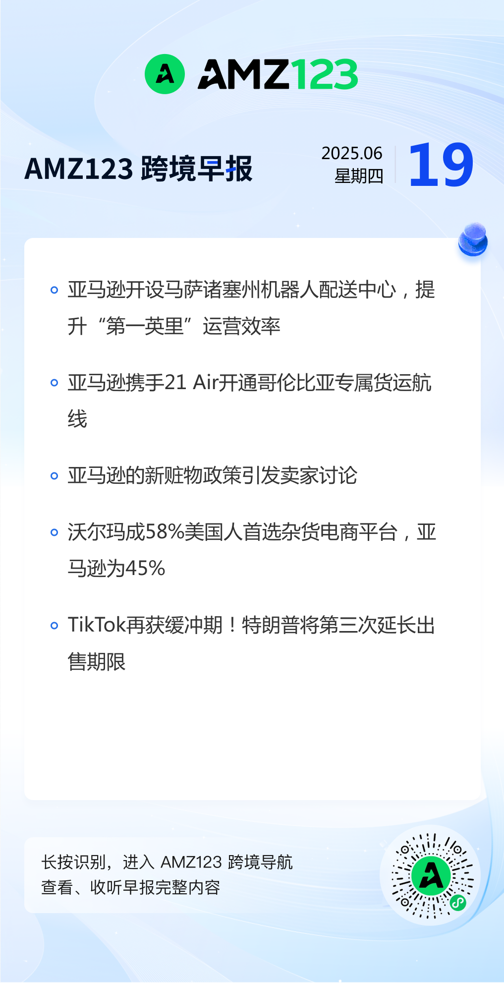 查看更多 亚马逊携手21 Air开通哥伦比亚专属货运航线/沃尔玛成58%美国人首选杂货电商平台/TikTok再获缓冲期!