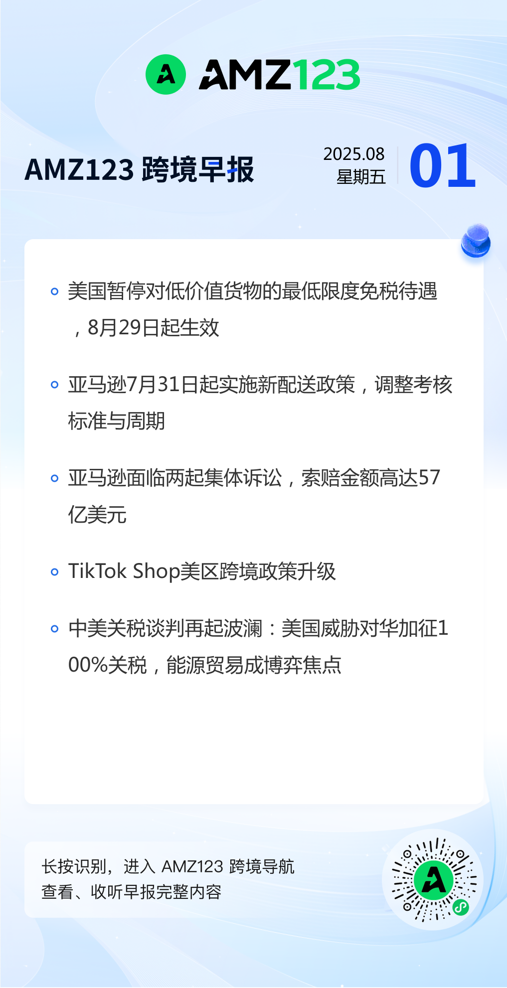 AMZ123获悉,当地时间7月30日,美国白宫发布声明称,根据美国总统特朗普签署的一项行政命令,自8月29日起,通过国际邮政网络以外的渠道发往美国且价值在800美元及以下的包裹,将不再享受最低限度免税待遇,而是将面临“所有适用关税”(all applicable duties)。在此前,“小额豁免”政策曾允许低价值商业货物运往美国而无需缴纳关税。白宫在出具的情况说明书中表示,“特朗普暂停最低限度豁免的速度比OBBBA(《大而美法案》)要求的更快,目的是应对国家紧急情况并挽救美国的企业。