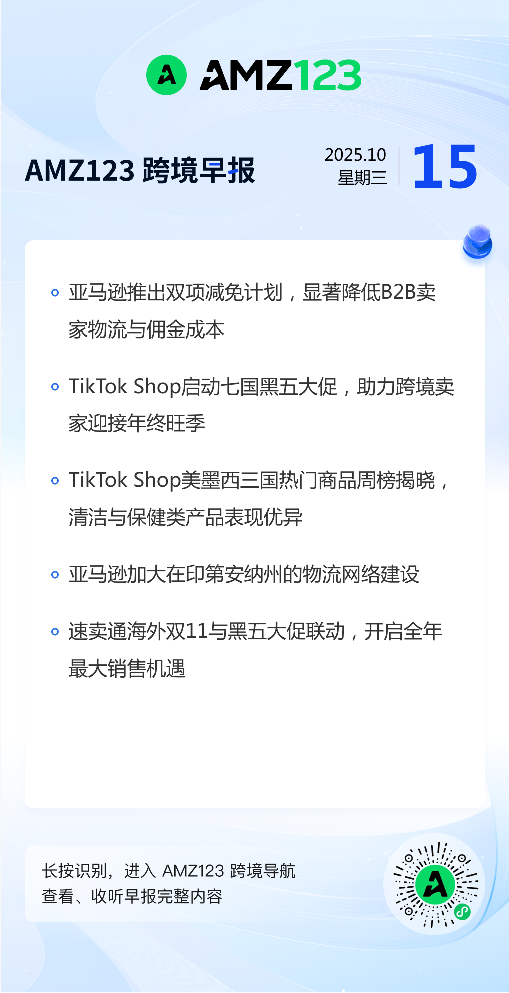 AMZ123获悉,亚马逊企业购于10月14日推出了“双项减免优惠计划”,旨在帮助B2B卖家降低物流与佣金成本,提升批量订单的利润空间与竞争力。该计划的两个核心优惠包括:“FBA一单多件订单配送费减免”,适用于企业买家一次性购买同一ASIN商品≥2件且该商品设置≥3%企业折扣时,系统将自动按件数进行阶梯减免配送费,比如一笔50件的订单能够节省最多24.5%的物流费用;另一项是“大额订单佣金优惠”,适合于FBA或FBM的B2B订单,单笔订单金额超过1000美元且商品设置≥3%企业折扣时,超出部分将按阶梯比例减免销售佣金,例如9000美元的订单可节省约320美元的佣金。