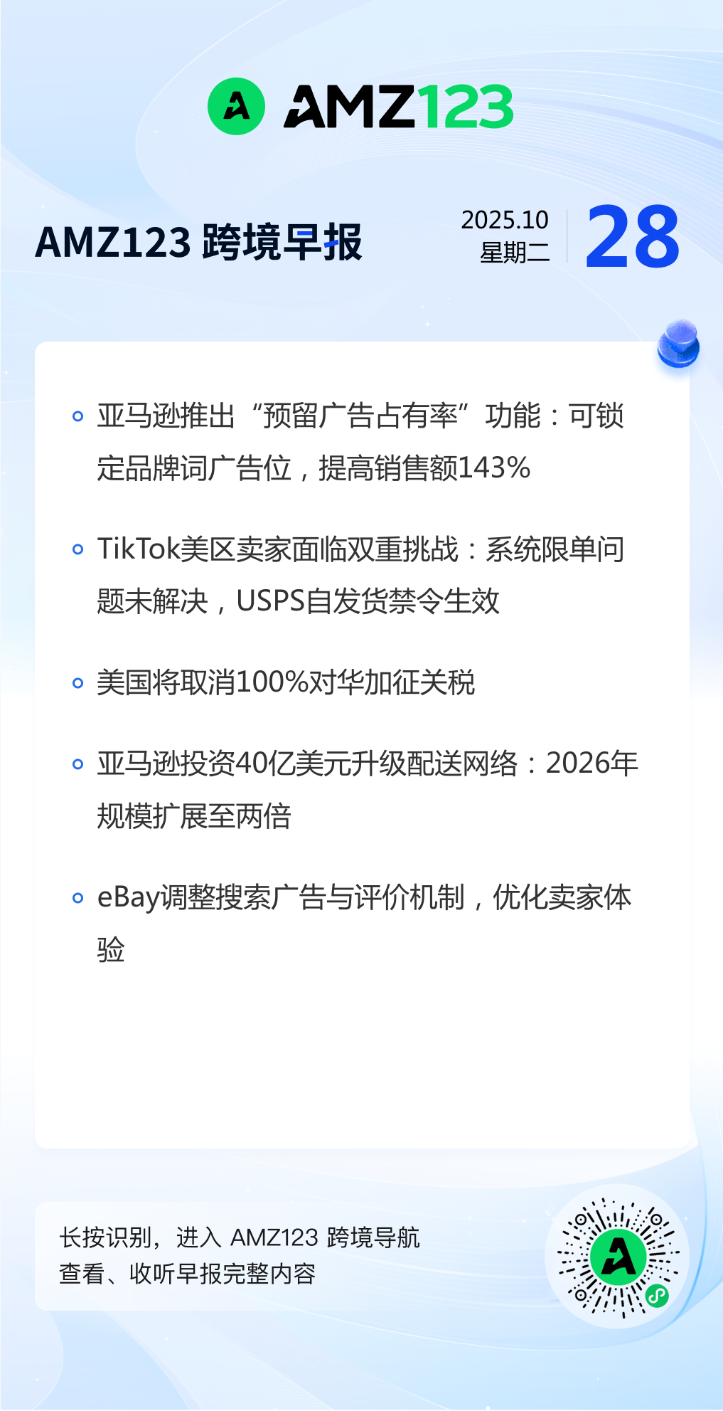 AMZ123获悉,10月27日,在中美经贸磋商释放关税缓和信号的同时,TikTok美国区的卖家却遭遇了系统异常的问题。上周末,超过千家店铺的日销量被限制为仅1单,部分零销量的账户也收到了违规提示。经过申诉后,大多数卖家于10月26日恢复了正常运营,但事件暴露了平台的风控漏洞。同时,自10月27日起,TikTok Shop全面禁止自发货卖家使用USPS物流服务,要求卖家改用FBT仓配一体或TikTok Shipping的官方方案,这一举措导致部分卖家的物流成本翻倍。随着黑色星期五的备货期临近,平台为接入官方物流的商家提供了运费补贴和流量倾斜,但中小卖家仍面临短期的运营压力。