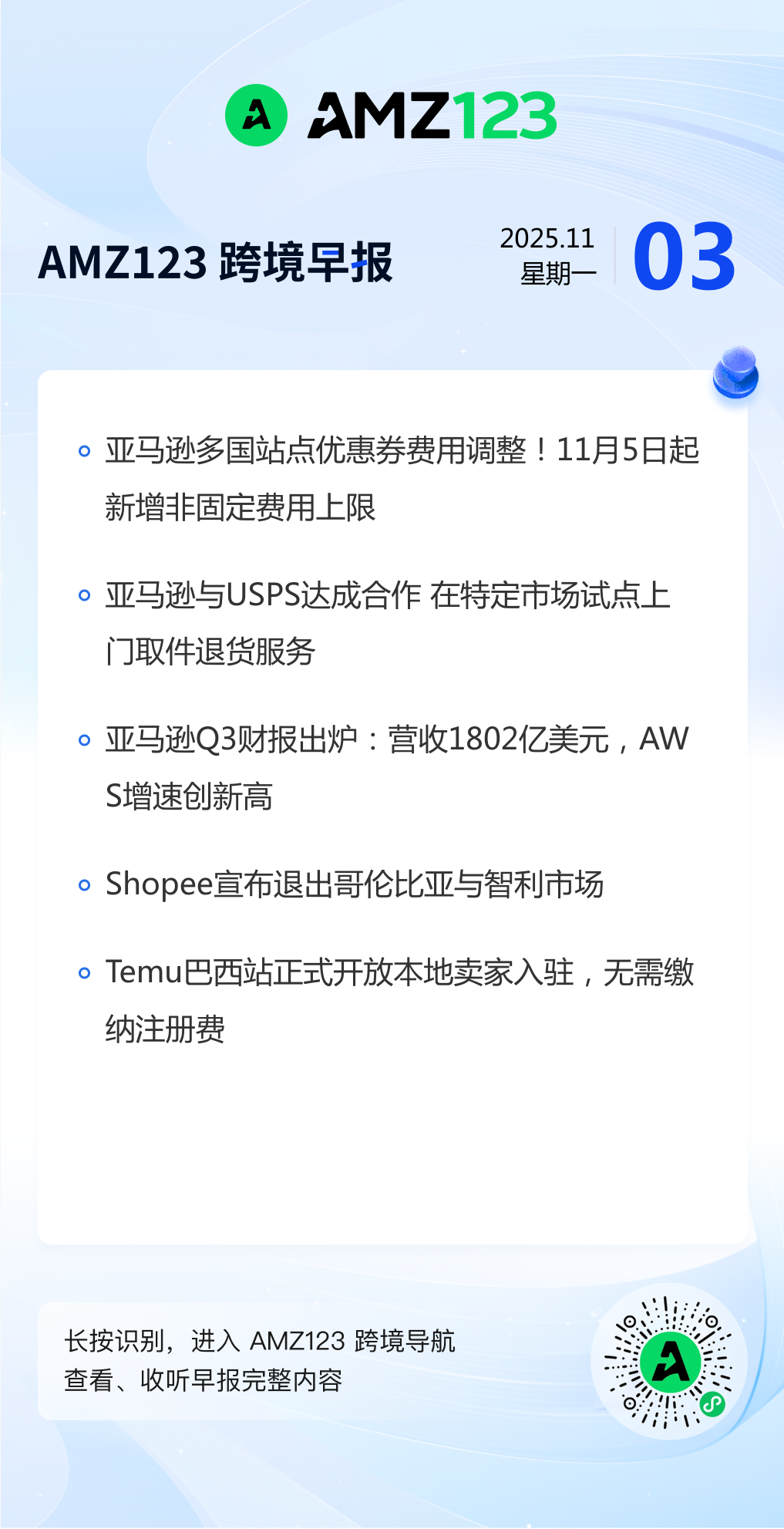 亚马逊多国站点优惠券费用调整!11月5日起新增非固定费用上限